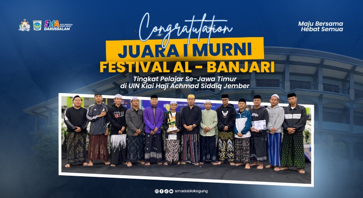 Siswa SMA Darussalam kembali menorehkan prestasi membanggakan dalam ajang Festival Al-Banjari tingkat pelajar se-Jawa Timur yang diselenggarakan di UIN Kiai Haji Achmad Siddiq (KHAS) Jember. Dalam kompetisi bergengsi tersebut, tim banjari SMA Darussalam berhasil meraih Juara 1 Murni, mengungguli berbagai tim unggulan dari berbagai kabupaten dan kota di Jawa Timur. Prestasi ini menjadi bukti nyata bahwa kerja keras, semangat, dan kualitas seni islami para siswa semakin berkembang dan mampu bersaing di tingkat regional.